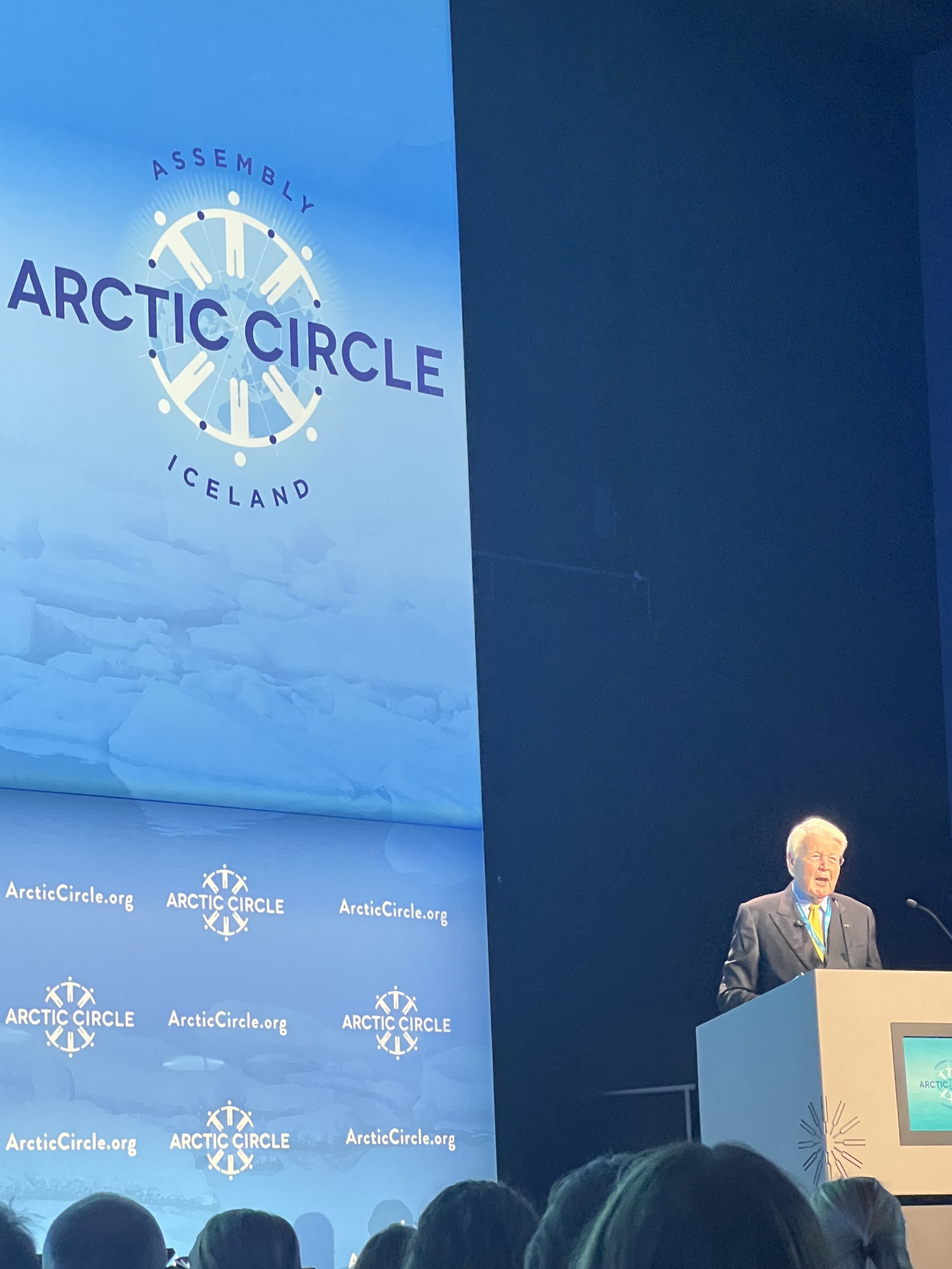 My favorite panel was a session titled "The Changing Geopolitics of the Arctic: Views From the Indo-Pacific." Here, I learned about how India, South Korea, and China's interests play into arctic affairs as non-arctic states. In addition, at the Plenary sessions (when the entire assembly comes together in one venue), I heard from the former President of Iceland, Ólafur Ragnar Grímsson, for multiple days straight, and I even got the chance to meet him on the last day! I was also lucky enough to speak with Admiral Giuseppe Cavo Dragone, the Chair of the NATO Military Committee, about NATO's perspective on arctic issues and involvement in the Arctic after his informative talk at the Plenary session on NATO in the Arctic. It was surreal to meet such important figures in the international affairs world – an opportunity unlike any other.