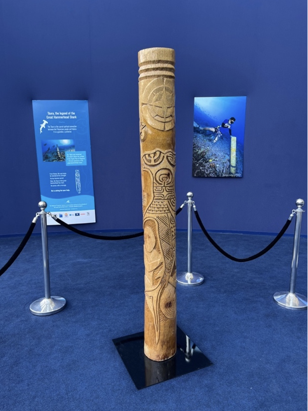 They had displayed a Tāura Tamataroa, a totem and messenger of the great hammerhead shark, an ambassador of the vibrant and proud Indigenous culture of the atoll. The sculptor explained to me that Polynesian peoplehave a deep spiritual connection with the great hammerhead shark and the Ocean — a relationship that Western science has trouble understanding and acknowledging without trying to explain it. But this profound bond between people and the Ocean is what makes each party both respectful of and protective toward the other, sustaining a wise and intergenerational balance in each other’s lives.